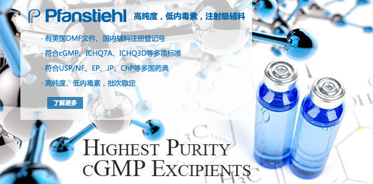 “熱烈祝賀Pfanstiehl的注射級甘氨酸Glycine(G-140)喜獲CDE登記號F20250000403, 這是Pfanstiehl產品獲得的第18個CDE登記號!”甘氨酸在醫藥輔料制劑中應用廣泛,, 可作為緩沖劑,增溶劑,穩定劑等,具有諸多優勢。Pfanstiehl秉承一貫高品質理念,為滿足全球生物制藥行業對于高品質甘氨酸的需求,隆重推出的注射級甘氨酸Glycine (G-140), 具有超高純度,超低內毒素,超低金屬殘留的特點,單獨檢測29種金屬離子,并且新增DNA,RNA,DNA酶,RNA酶和脂肪酶,亞硝酸鹽等多項質量指標的檢測,符合多國藥典規定(USP, EP, BP, JPE, ChP),可用于生物治療性藥物和疫苗的生產。產品信息:· 產品名稱:Glycine, High Purity, Low Endotoxin, Low Metals, USP, EP, BP, JPE, ChP (G-140)· 中文名稱:甘氨酸· 分子式:C2H5NO2· 分子量:75.07 g / mol· CAS號:56-40-6· 產品貨號:G-140產品特點: · 超高純度,超低內毒素,超低微生物含量,超低金屬雜質殘留· 質量指標新增DNA,RNA,DNA酶,RNA酶,脂肪酶和亞硝酸鹽檢測· 符合多國藥典:USP, EP, BP, JPE, ChP· 符合ICH Q3D標準· 符合GMP標準· 已獲DMF和CDE登記號 產品應用:· 緩沖劑· 穩定劑· 增溶劑如果您對Pfanstiehl注射級別Glycine G-140感興趣,歡迎聯系Pfanstiehl 中國區代理商北京西美杰科技有限公司獲得如下詳細的產品概況說明文件和測試樣品。Pfanstiehl Inc.最新產品系列如下,歡迎聯系北京西美杰科技有限公司獲取100g裝免費樣品。北京西美杰科技有限公司為Pfanstiehl中國代理,為客戶提供完善的技術支持與售后服務。歡迎撥打西美杰客服電話400-050-4006或者登陸網站www_xmjsci_com.pxtsmo.pro了解更多信息。 更多>西美杰介紹